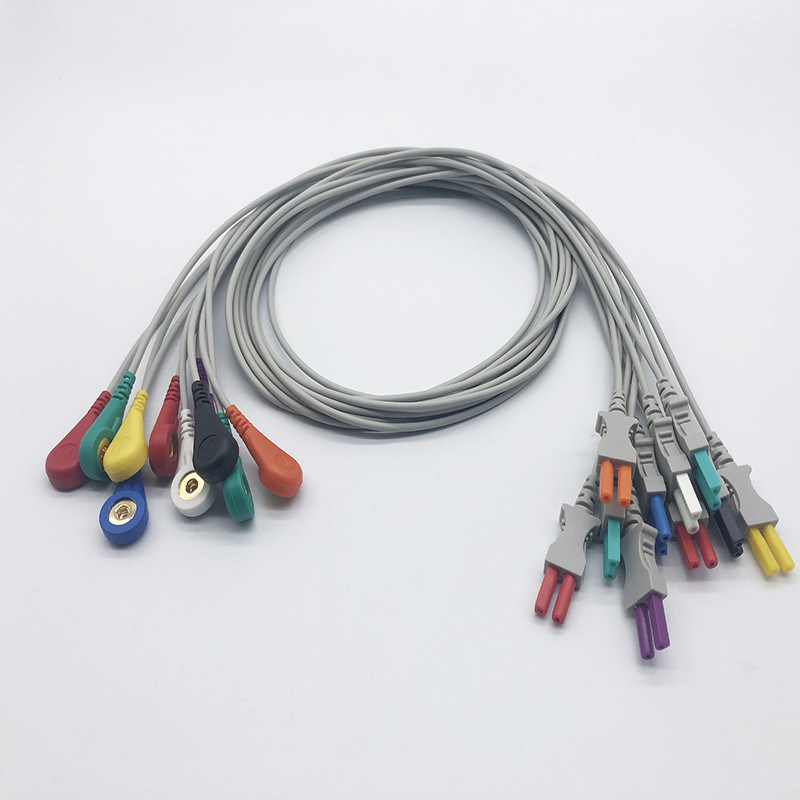 Cáp ECG thường bao gồm nhiều dây dẫn với các đầu nối đặc biệt ở một đầu gắn vào các điện cực đặt trên cơ thể bệnh nhân.Cuối khác của cáp kết nối với máy ECG hoặc màn hìnhCáp mang các tín hiệu điện được tạo ra bởi hoạt động của tim từ các điện cực đến máy, cho phép máy hiển thị và ghi lại hình dạng sóng ECG của bệnh nhân.