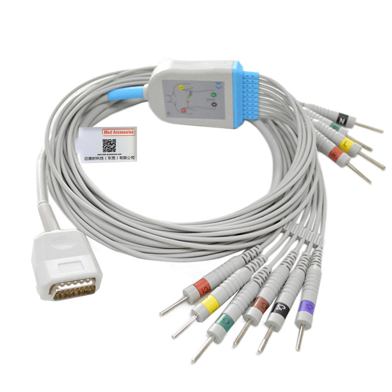 Burdick tương thích trực tiếp kết nối Plug chuối 10Lead ECG Cable Mortara 12 Lead EKG Leadwires